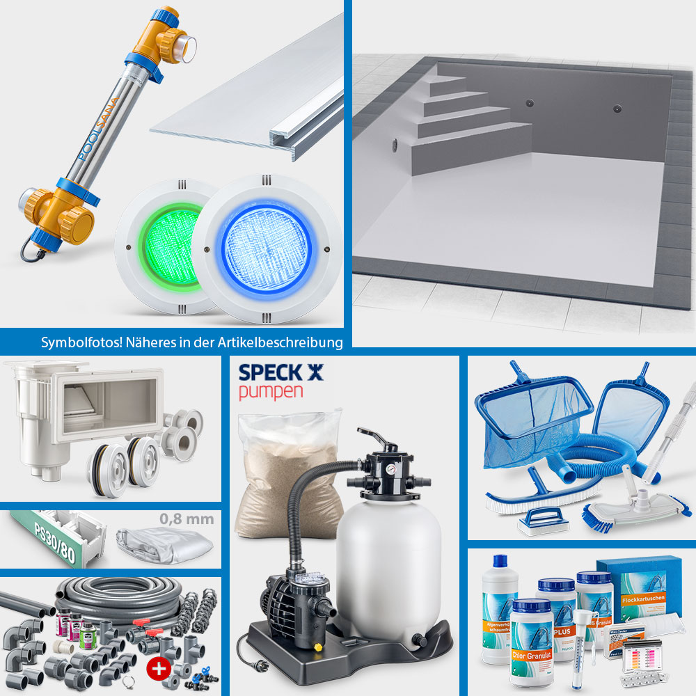 Bitte beachten Sie, dass die Pool-Sets aus organisatorischen Gründen in ihrer Zusammenstellung grundsätzlich nicht geändert werden können. Die Auswahl an Pool-Sets ist jedoch so groß, dass nahezu alle Anforderungen hinsichtlich Einbausituation sowie Zubehörausstattung gedeckt werden können. Gerne sind wir Ihnen bei der Auswahl des idealen Sets per E-Mail behilflich.