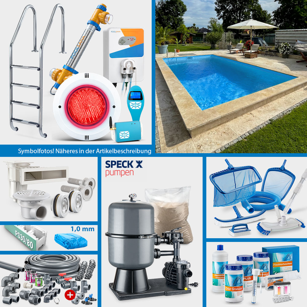 Bitte beachten Sie, dass die Pool-Sets aus organisatorischen Gründen in ihrer Zusammenstellung grundsätzlich nicht geändert werden können. Die Auswahl an Pool-Sets ist jedoch so groß, dass nahezu alle Anforderungen hinsichtlich Einbausituation sowie Zubehörausstattung gedeckt werden können. Gerne sind wir Ihnen bei der Auswahl des idealen Sets per E-Mail behilflich.
