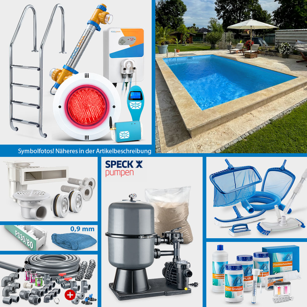 Bitte beachten Sie, dass die Pool-Sets aus organisatorischen Gründen in ihrer Zusammenstellung grundsätzlich nicht geändert werden können. Die Auswahl an Pool-Sets ist jedoch so groß, dass nahezu alle Anforderungen hinsichtlich Einbausituation sowie Zubehörausstattung gedeckt werden können. Gerne sind wir Ihnen bei der Auswahl des idealen Sets per E-Mail behilflich.