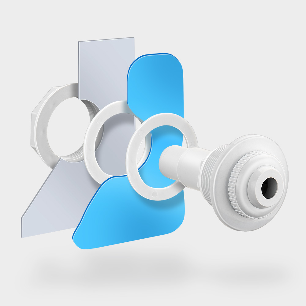 Die Pool-Düse ist ein Swimmingpool Einbauteil, welches das Wasser von der Sandfilteranlage über die Poolverrohrung zurück ins Becken bringt.