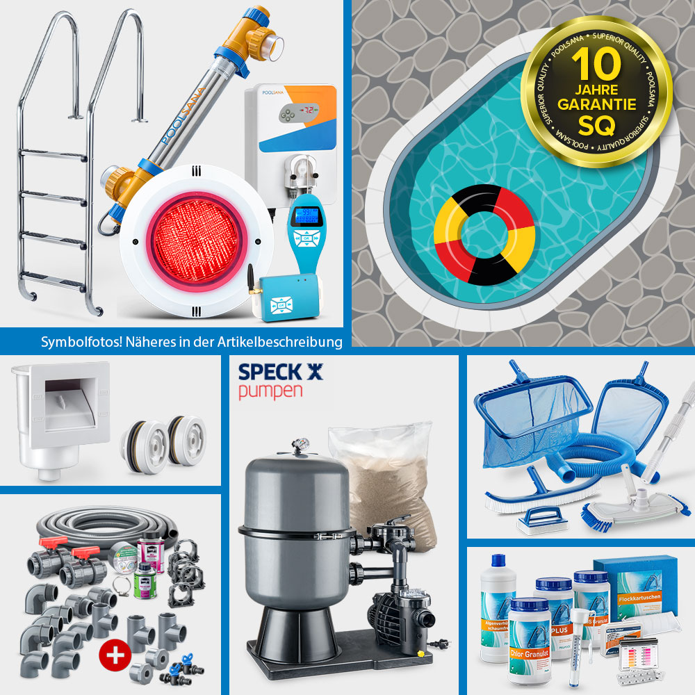 Bitte beachten Sie, dass die Pool-Sets aus organisatorischen Gründen in ihrer Zusammenstellung grundsätzlich nicht geändert werden können. Die Auswahl an Pool-Sets ist jedoch so groß, dass nahezu alle Anforderungen hinsichtlich Einbausituation sowie Zubehörausstattung gedeckt werden können. Gerne sind wir Ihnen bei der Auswahl des idealen Sets per E-Mail behilflich.