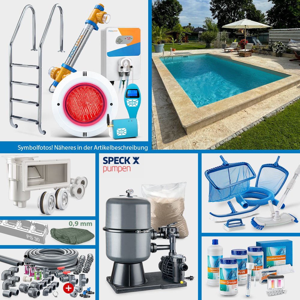 Bitte beachten Sie, dass die Pool-Sets aus organisatorischen Gründen in ihrer Zusammenstellung grundsätzlich nicht geändert werden können. Die Auswahl an Pool-Sets ist jedoch so groß, dass nahezu alle Anforderungen hinsichtlich Einbausituation sowie Zubehörausstattung gedeckt werden können. Gerne sind wir Ihnen bei der Auswahl des idealen Sets per E-Mail behilflich.