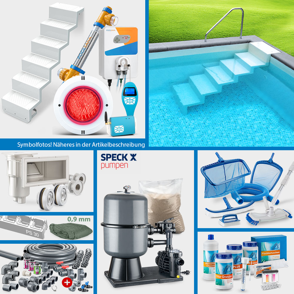 Bitte beachten Sie, dass die Pool-Sets aus organisatorischen Gründen in ihrer Zusammenstellung grundsätzlich nicht geändert werden können. Die Auswahl an Pool-Sets ist jedoch so groß, dass nahezu alle Anforderungen hinsichtlich Einbausituation sowie Zubehörausstattung gedeckt werden können. Gerne sind wir Ihnen bei der Auswahl des idealen Sets per E-Mail behilflich.