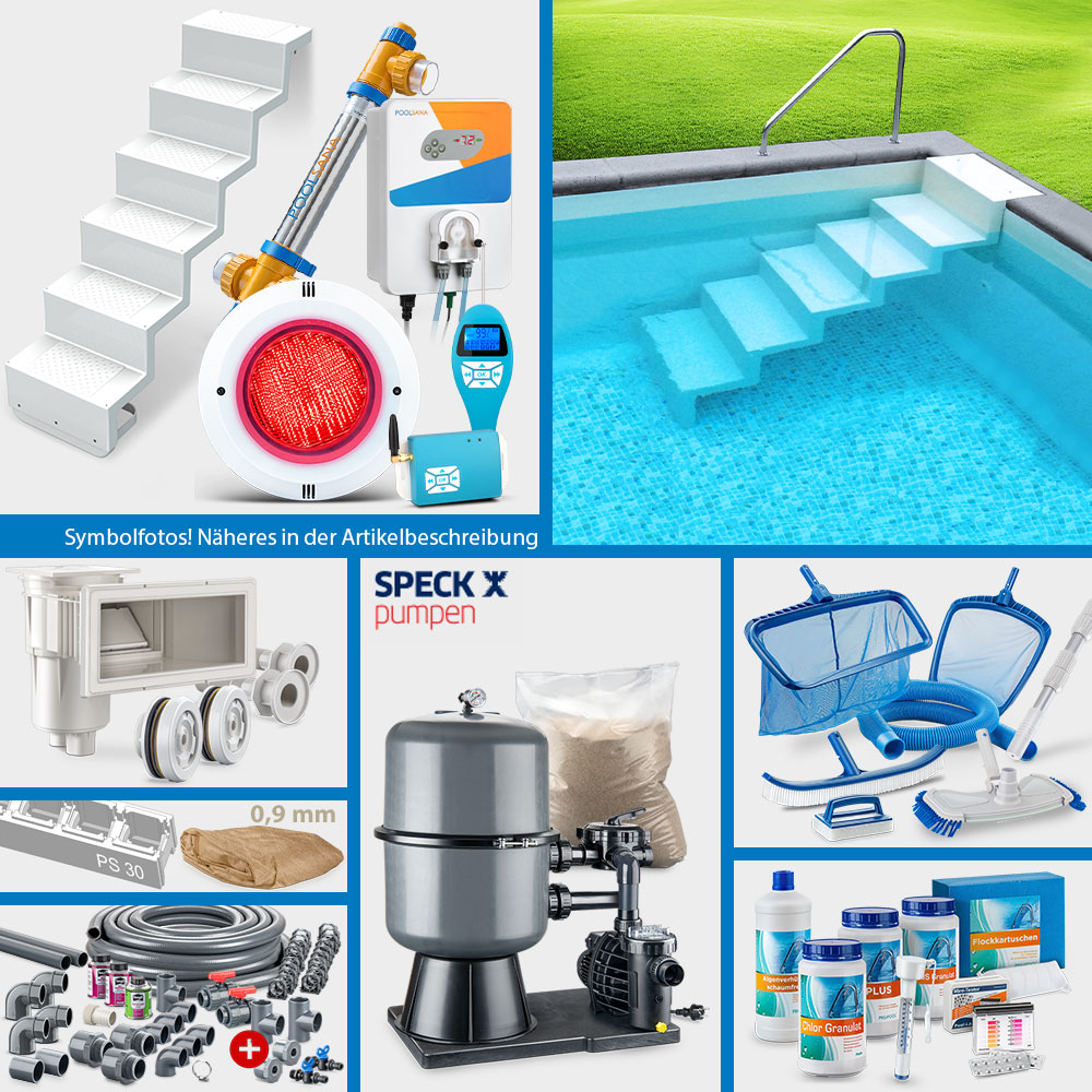 Bitte beachten Sie, dass die Pool-Sets aus organisatorischen Gründen in ihrer Zusammenstellung grundsätzlich nicht geändert werden können. Die Auswahl an Pool-Sets ist jedoch so groß, dass nahezu alle Anforderungen hinsichtlich Einbausituation sowie Zubehörausstattung gedeckt werden können. Gerne sind wir Ihnen bei der Auswahl des idealen Sets per E-Mail behilflich.