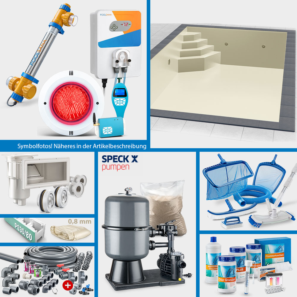 Bitte beachten Sie, dass die Pool-Sets aus organisatorischen Gründen in ihrer Zusammenstellung grundsätzlich nicht geändert werden können. Die Auswahl an Pool-Sets ist jedoch so groß, dass nahezu alle Anforderungen hinsichtlich Einbausituation sowie Zubehörausstattung gedeckt werden können. Gerne sind wir Ihnen bei der Auswahl des idealen Sets per E-Mail behilflich.