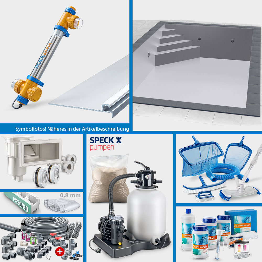 Bitte beachten Sie, dass die Pool-Sets aus organisatorischen Gründen in ihrer Zusammenstellung grundsätzlich nicht geändert werden können. Die Auswahl an Pool-Sets ist jedoch so groß, dass nahezu alle Anforderungen hinsichtlich Einbausituation sowie Zubehörausstattung gedeckt werden können. Gerne sind wir Ihnen bei der Auswahl des idealen Sets per E-Mail behilflich.