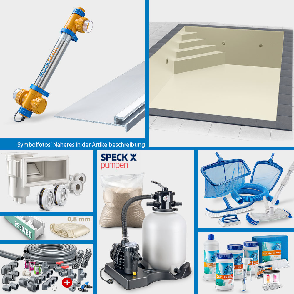 Bitte beachten Sie, dass die Pool-Sets aus organisatorischen Gründen in ihrer Zusammenstellung grundsätzlich nicht geändert werden können. Die Auswahl an Pool-Sets ist jedoch so groß, dass nahezu alle Anforderungen hinsichtlich Einbausituation sowie Zubehörausstattung gedeckt werden können. Gerne sind wir Ihnen bei der Auswahl des idealen Sets per E-Mail behilflich.