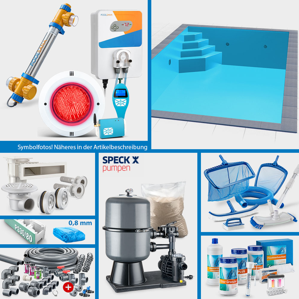 Bitte beachten Sie, dass die Pool-Sets aus organisatorischen Gründen in ihrer Zusammenstellung grundsätzlich nicht geändert werden können. Die Auswahl an Pool-Sets ist jedoch so groß, dass nahezu alle Anforderungen hinsichtlich Einbausituation sowie Zubehörausstattung gedeckt werden können. Gerne sind wir Ihnen bei der Auswahl des idealen Sets per E-Mail behilflich.