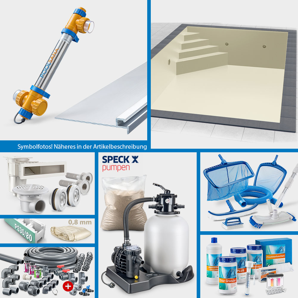 Bitte beachten Sie, dass die Pool-Sets aus organisatorischen Gründen in ihrer Zusammenstellung grundsätzlich nicht geändert werden können. Die Auswahl an Pool-Sets ist jedoch so groß, dass nahezu alle Anforderungen hinsichtlich Einbausituation sowie Zubehörausstattung gedeckt werden können. Gerne sind wir Ihnen bei der Auswahl des idealen Sets per E-Mail behilflich.
