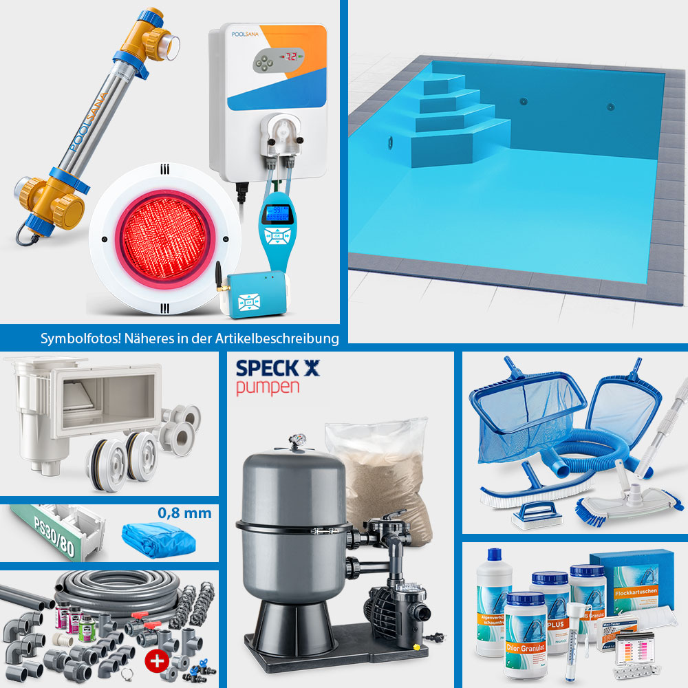 Bitte beachten Sie, dass die Pool-Sets aus organisatorischen Gründen in ihrer Zusammenstellung grundsätzlich nicht geändert werden können. Die Auswahl an Pool-Sets ist jedoch so groß, dass nahezu alle Anforderungen hinsichtlich Einbausituation sowie Zubehörausstattung gedeckt werden können. Gerne sind wir Ihnen bei der Auswahl des idealen Sets per E-Mail behilflich.