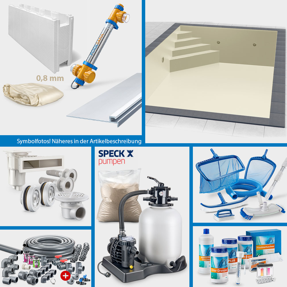 Bitte beachten Sie, dass die Pool-Sets aus organisatorischen Gründen in ihrer Zusammenstellung grundsätzlich nicht geändert werden können. Die Auswahl an Pool-Sets ist jedoch so groß, dass nahezu alle Anforderungen hinsichtlich Einbausituation sowie Zubehörausstattung gedeckt werden können. Gerne sind wir Ihnen bei der Auswahl des idealen Sets per E-Mail behilflich.