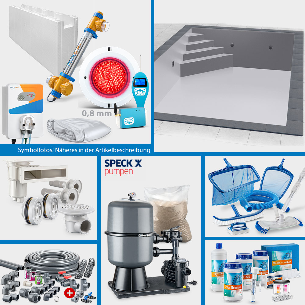 Bitte beachten Sie, dass die Pool-Sets aus organisatorischen Gründen in ihrer Zusammenstellung grundsätzlich nicht geändert werden können. Die Auswahl an Pool-Sets ist jedoch so groß, dass nahezu alle Anforderungen hinsichtlich Einbausituation sowie Zubehörausstattung gedeckt werden können. Gerne sind wir Ihnen bei der Auswahl des idealen Sets per E-Mail behilflich.