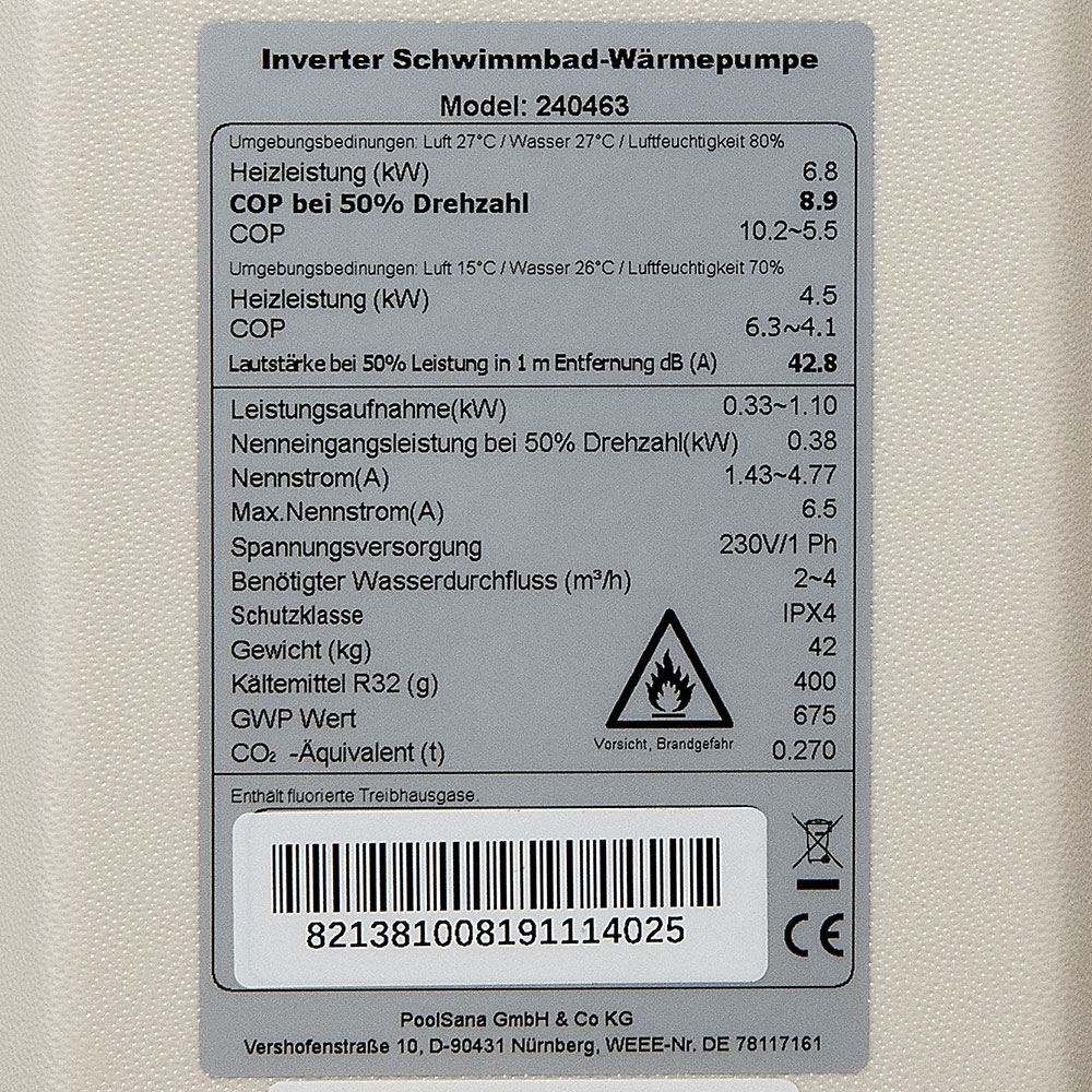 Preis- und Leistungsstark - Pool Full-Inverter-Wärmepumpe POOLSANA InverPURE 7 mit bis zu 6,8 kW Heizleistung