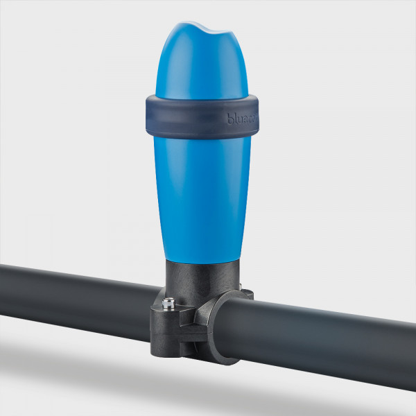 Rohrklemme für die feste Einbindung des Blue Connect in den Wasserkreislauf. Mit Verschlussdeckel, wenn kein Blue Connect angeschlossen ist.