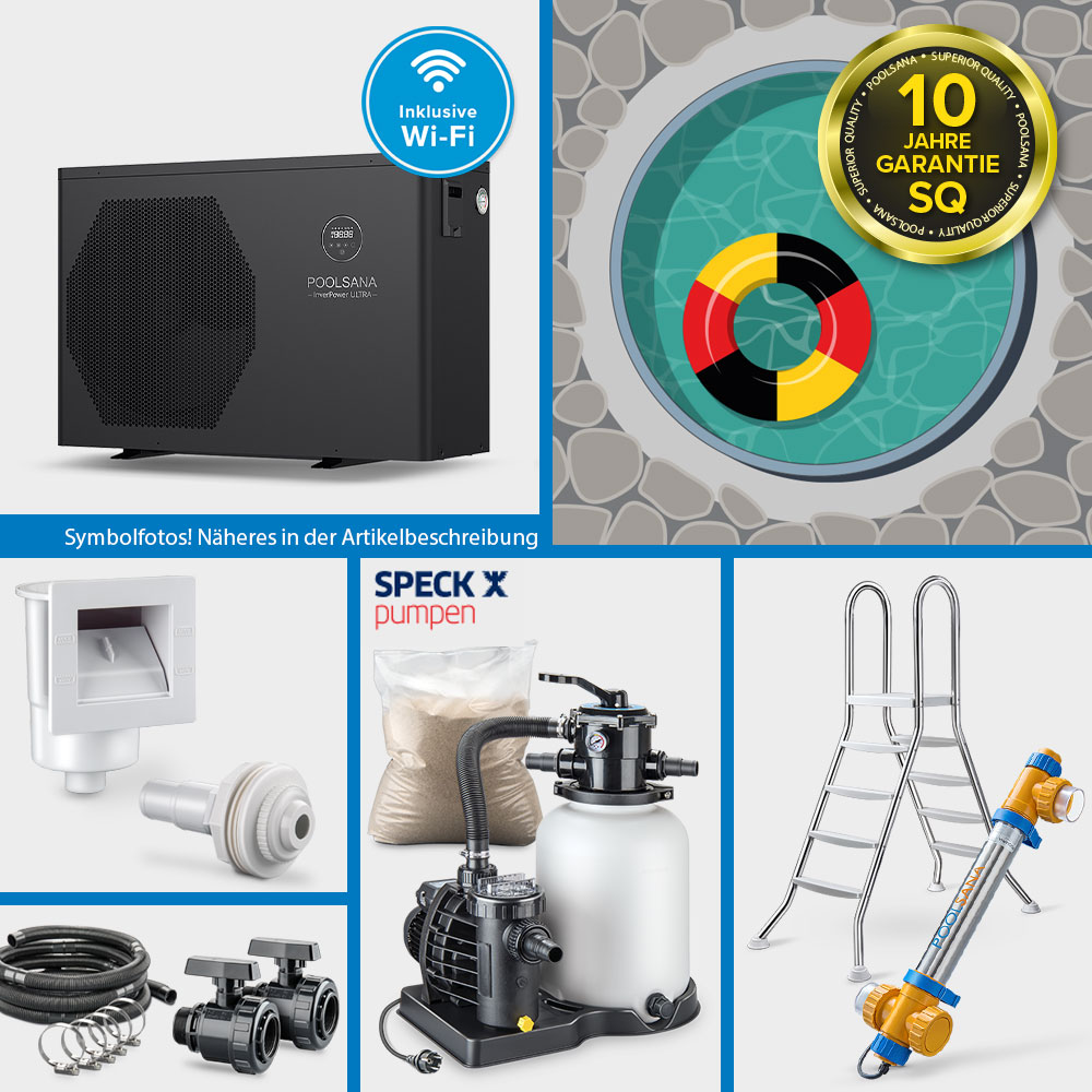 Bitte beachten Sie, dass die Pool-Sets aus organisatorischen Gründen in ihrer Zusammenstellung grundsätzlich nicht geändert werden können. Die Auswahl an Pool-Sets ist jedoch so groß, dass nahezu alle Anforderungen hinsichtlich Einbausituation sowie Zubehörausstattung gedeckt werden können. Gerne sind wir Ihnen bei der Auswahl des idealen Sets per E-Mail behilflich.