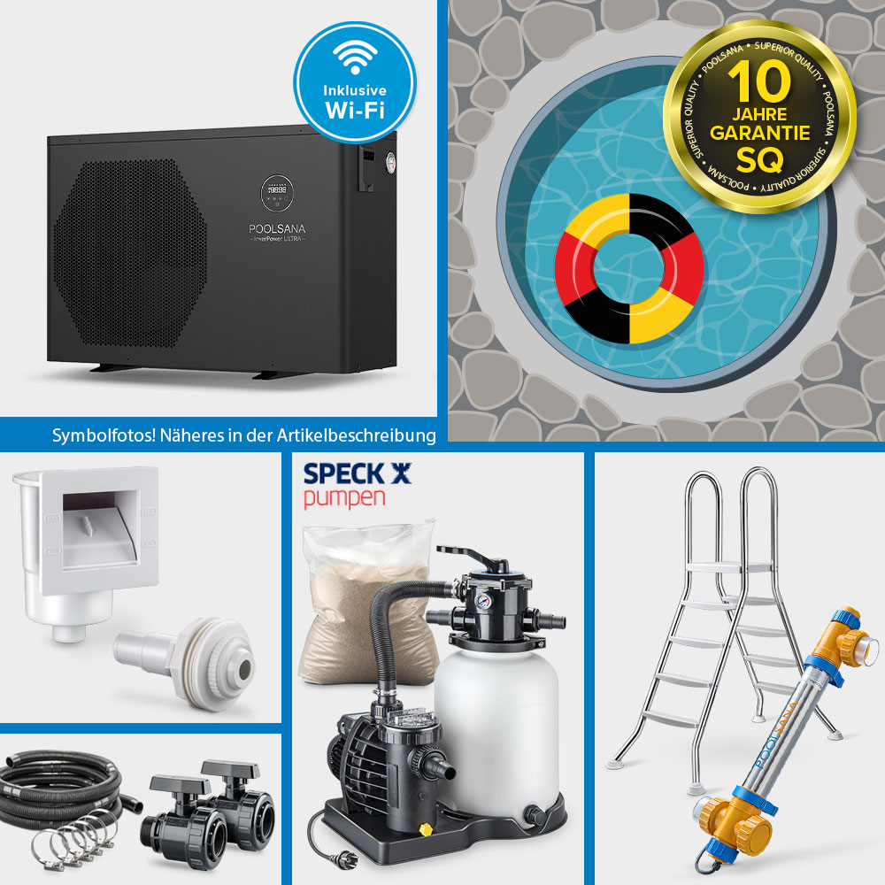 Sandfilteranlage POOLSANA PRO PRIME - Made in Germany - mit Filterbehälter Ø 400 mm und Original SPECK Poolpumpe PP 7.