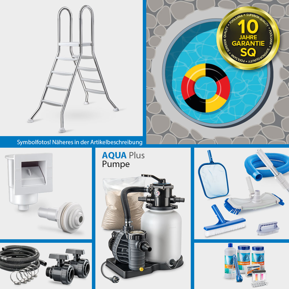 Bitte beachten Sie, dass die Pool-Sets aus organisatorischen Gründen in ihrer Zusammenstellung grundsätzlich nicht geändert werden können. Die Auswahl an Pool-Sets ist jedoch so groß, dass nahezu alle Anforderungen hinsichtlich Einbausituation sowie Zubehörausstattung gedeckt werden können. Gerne sind wir Ihnen bei der Auswahl des idealen Sets per E-Mail behilflich.