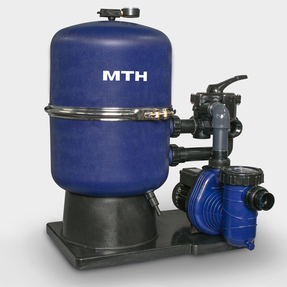 In Verbindung mit der selbstansaugenden, steckerfertigen Poolpumpe, welche eine Umwälzleistung von ca. 11,5 m³/h bei 6 mWs (600 Watt / 230 V) hat, ist die Anlage für Schwimmbecken bis ca. 50 m³ sehr gut geeignet.