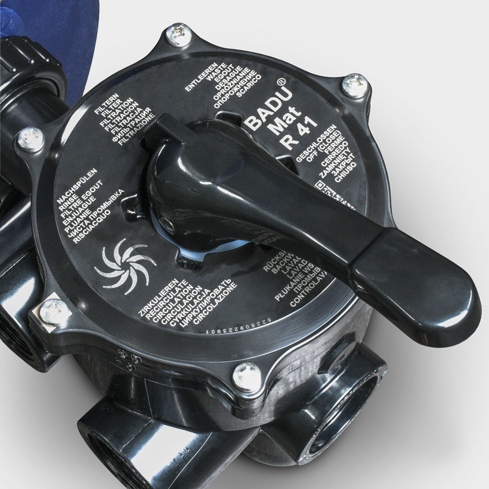 - Filtern: Normale Betriebsstellung. Das dem Becken entnommene Wasser durchläuft den Filtersand und wird dadurch gereinigt. Auch das Bodensaugen erfolgt über diese Position.