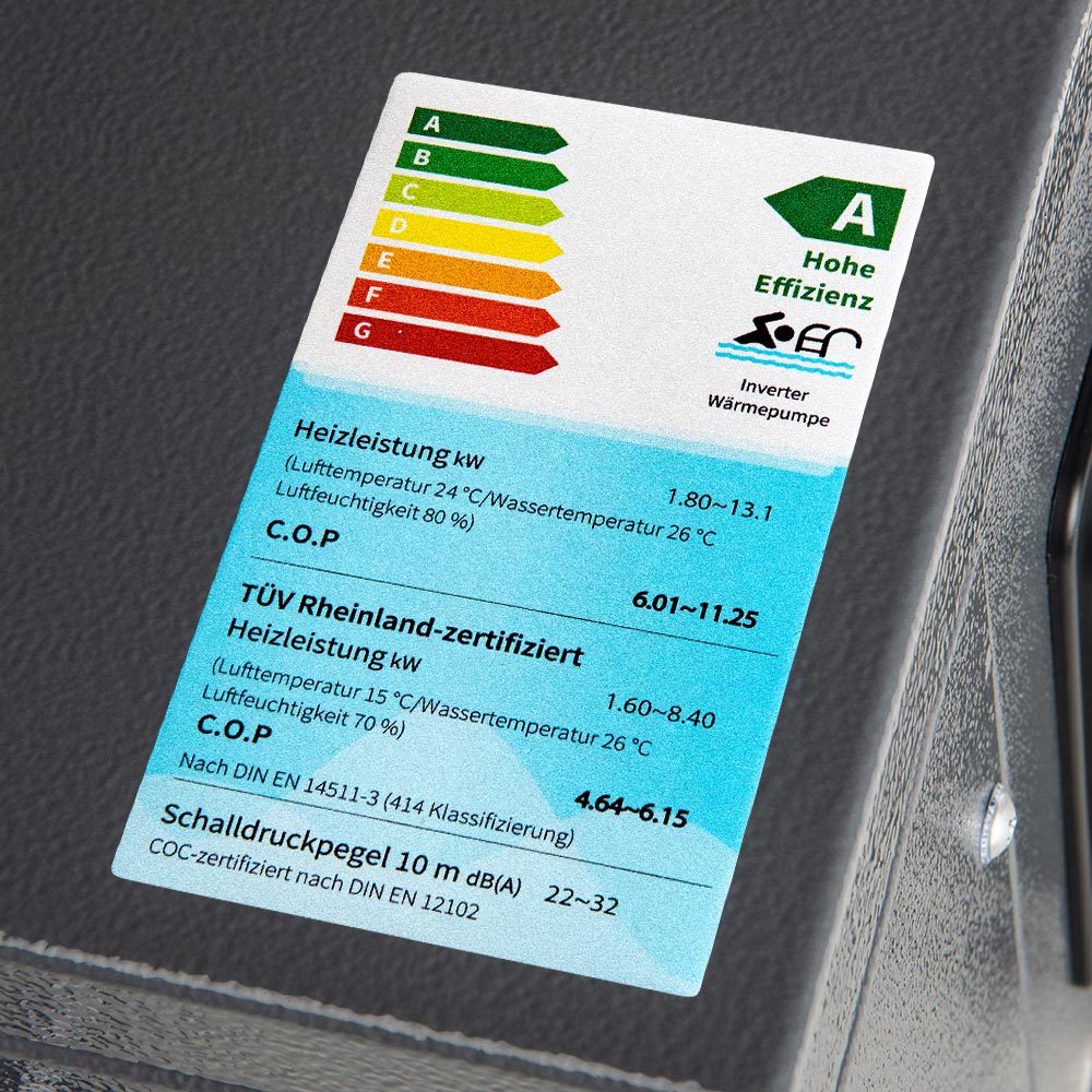 Erforderliche Leistung der Schwimmbadpumpe: Bitte achten Sie darauf, dass die Förderleistung Ihrer Schwimmbadpumpe mindestens den Angaben des „Mindestwasserdurchflusses“ der Wärmepumpe entspricht (zu finden unter dem oben aufgeführten Reiter „Technische Daten“). Falls die Förderleistung deutlich schwächer sein sollte, kann dies insbesondere zu einem weniger effizienten Arbeiten der Wärmepumpe und dadurch zu einem schwächerem Heizergebnis führen. Am besten sollte die Leistung Schwimmbadpumpe zudem ca. 1-2 m³ stärker ausgelegt sein als der erforderliche Mindestwasserdurchfluss.