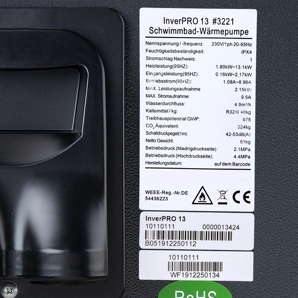 Alle InverPRO Wärmepumpen verfügen über ein Metall-Gehäuse, welches in RAL 5008 graublau schutzlackiert ist. Im Inneren sorgt ein Wärmetauscher mit Titan-Heizwendel für die ideale Wärmeübertragung an das Schwimmbadwasser. Darüber hinaus ist ein langlebiger Kompressor des Markenherstellers Hitachi verbaut, auf den es sogar eine 60-monatige Garantie laut Hersteller-Garantiebestimmungen gibt.