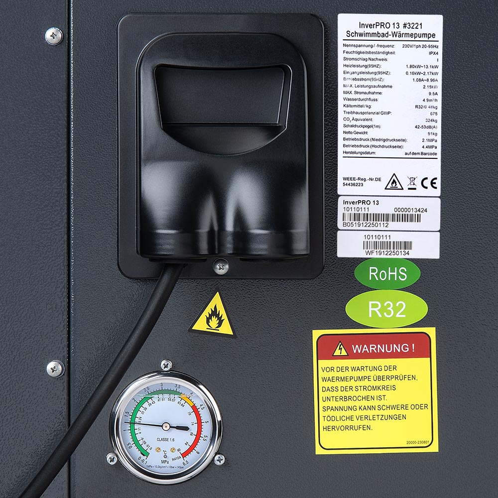Elektrischer Anschluss: Werkseitig ist die Wärmepumpe bereits mit einem ca. 1,5 m langen Anschlusskabel mit Netzstecker ausgestattet. Somit wird lediglich eine freie, mit 16 A separat abgesicherte Steckdose für den elektrischen Anschluss benötigt.
