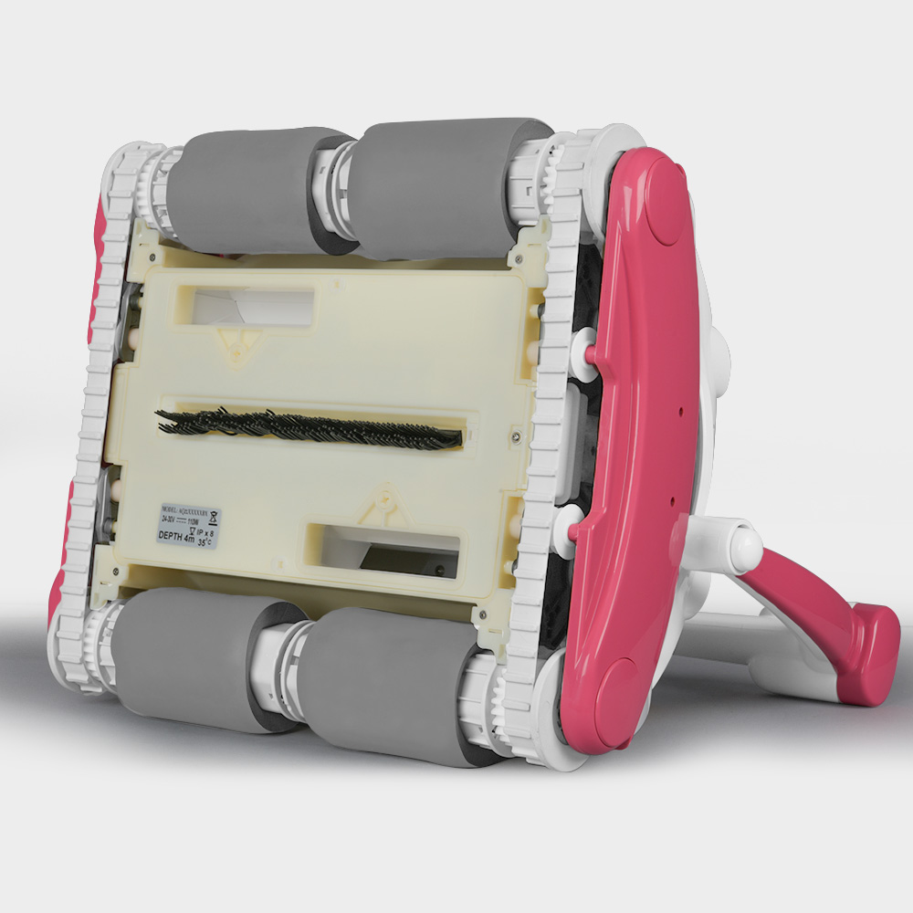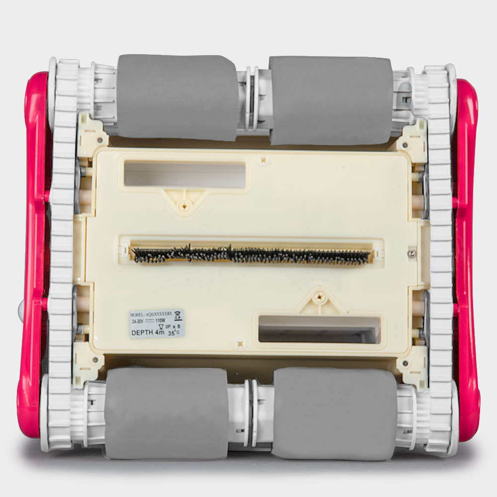 Die hochwertigen und langlebigen PVA-Superbrush-Bürsten sorgen dabei für einen optimalen Halt, sodass er universell bei jedem Untergrund (PVC-Folie, Fliesen, GFK) eingesetzt werden kann. Zusätzlich verfügt er an der Unterseite über eine Vibrationsbürste, die von den Antriebswalzen mit angetrieben wird und zusätzliche Reinigung leistet.